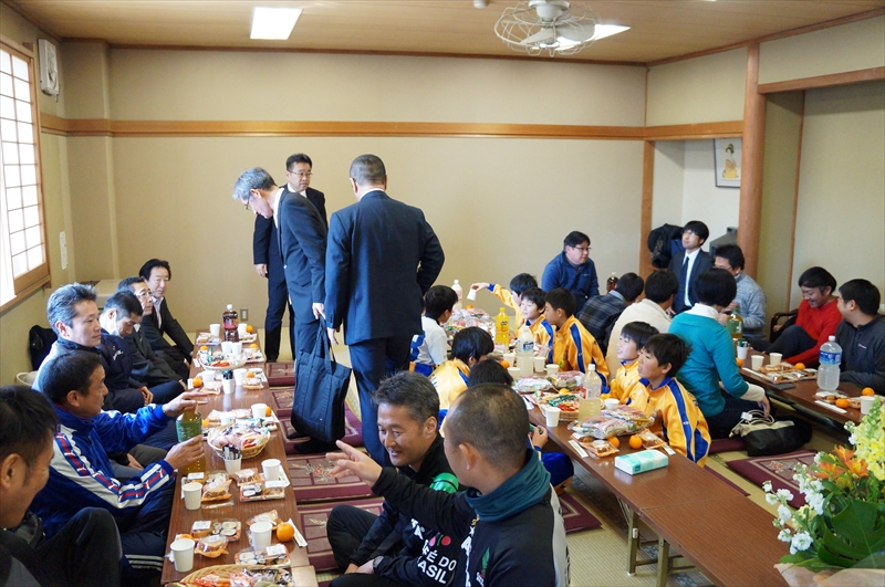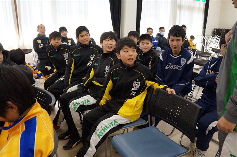2月だというのに暖かい日差しのなか、長野FCの平成30年度U-12ジュニア(31期生)10名のジュニア課程修了と進級式が執り行われ、クラブ生、保護者、スタッフが見守るなか、代表、幹事、顧問、監督の祝辞が述べられました。また恒例の記念品の贈呈や記念ビデオの上映が行われました。