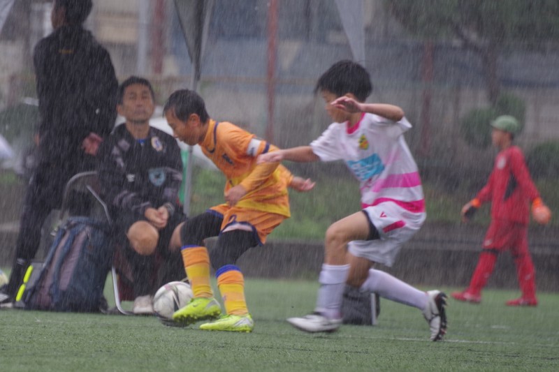 顔に叩きつける雨を腕でぬぐいながら全力で走る。ぶつかり合い、押し合いながらも懸命にゴールを目指し、必死にゴールを守る。