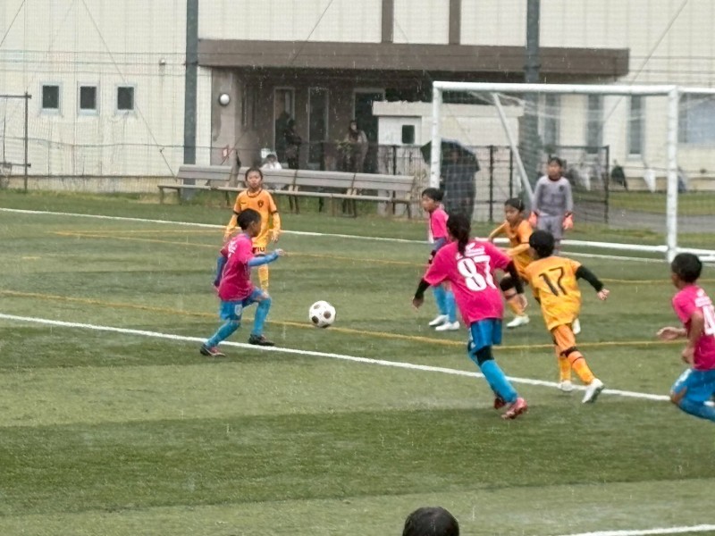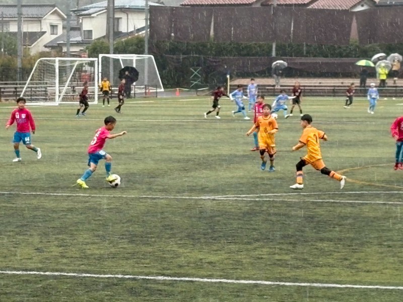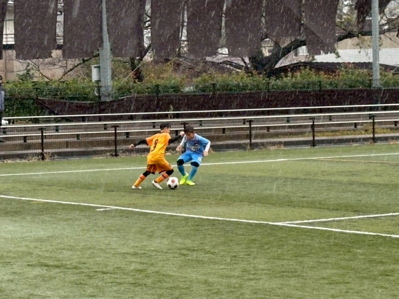 人工芝のピッチでしたが、降雨によってスリッピーでパスが伸びたり、