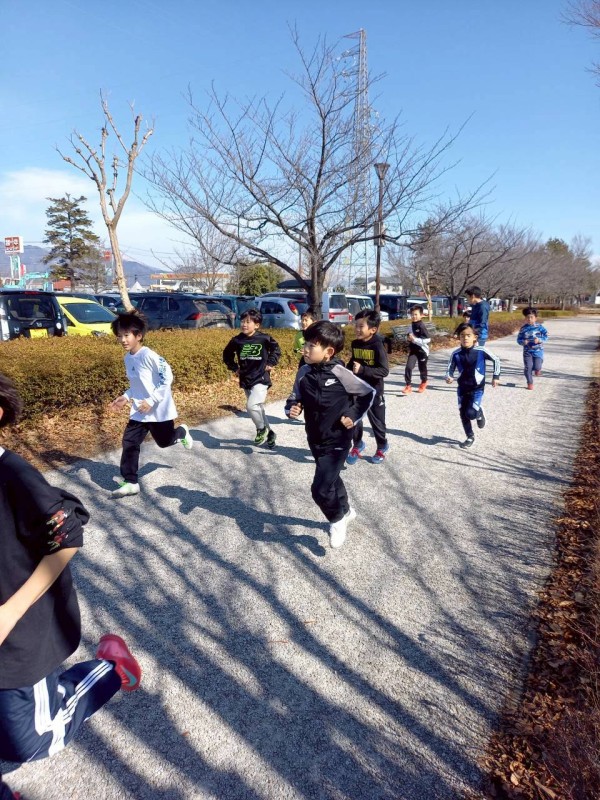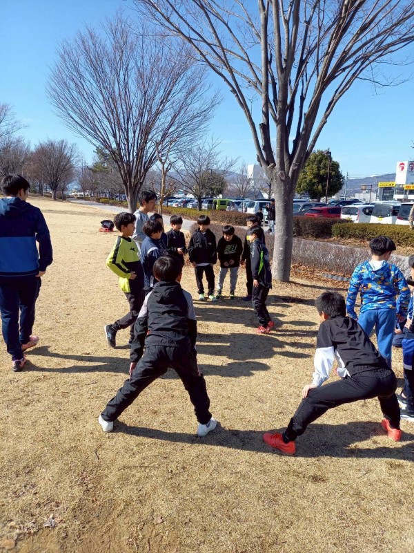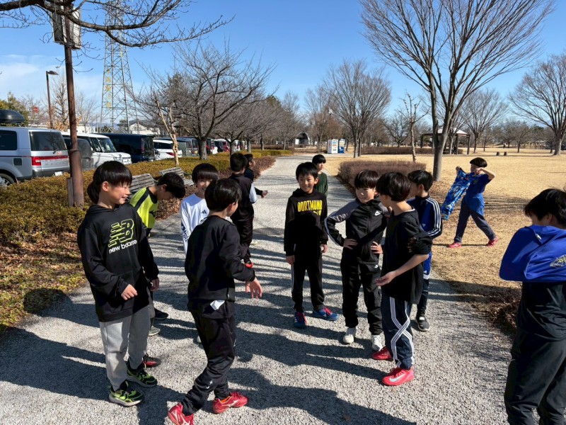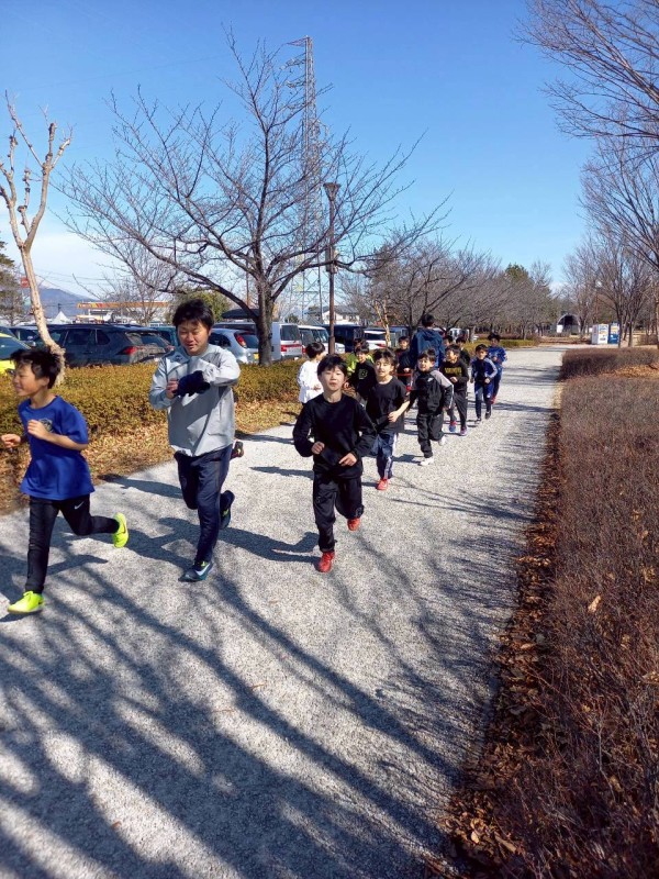 試合前には体力アップのため、会場の南長野運動公園の外周をランニング!